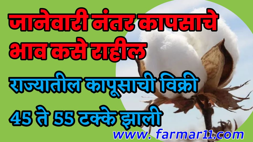 जानेवारी नंतर कापसाचे भाव कसे राहील -राज्यातील कापसाची विक्री ४५-५५ टक्के झाली